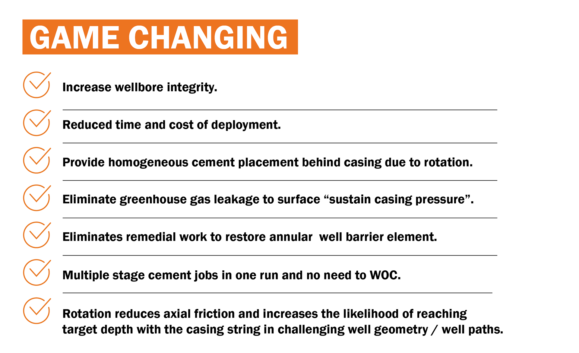 NESA’s patented RotaCEM technology brings rotation into the cement process to ensure cleaning of wellbore before cementing and optimal cement placement with rotation.
